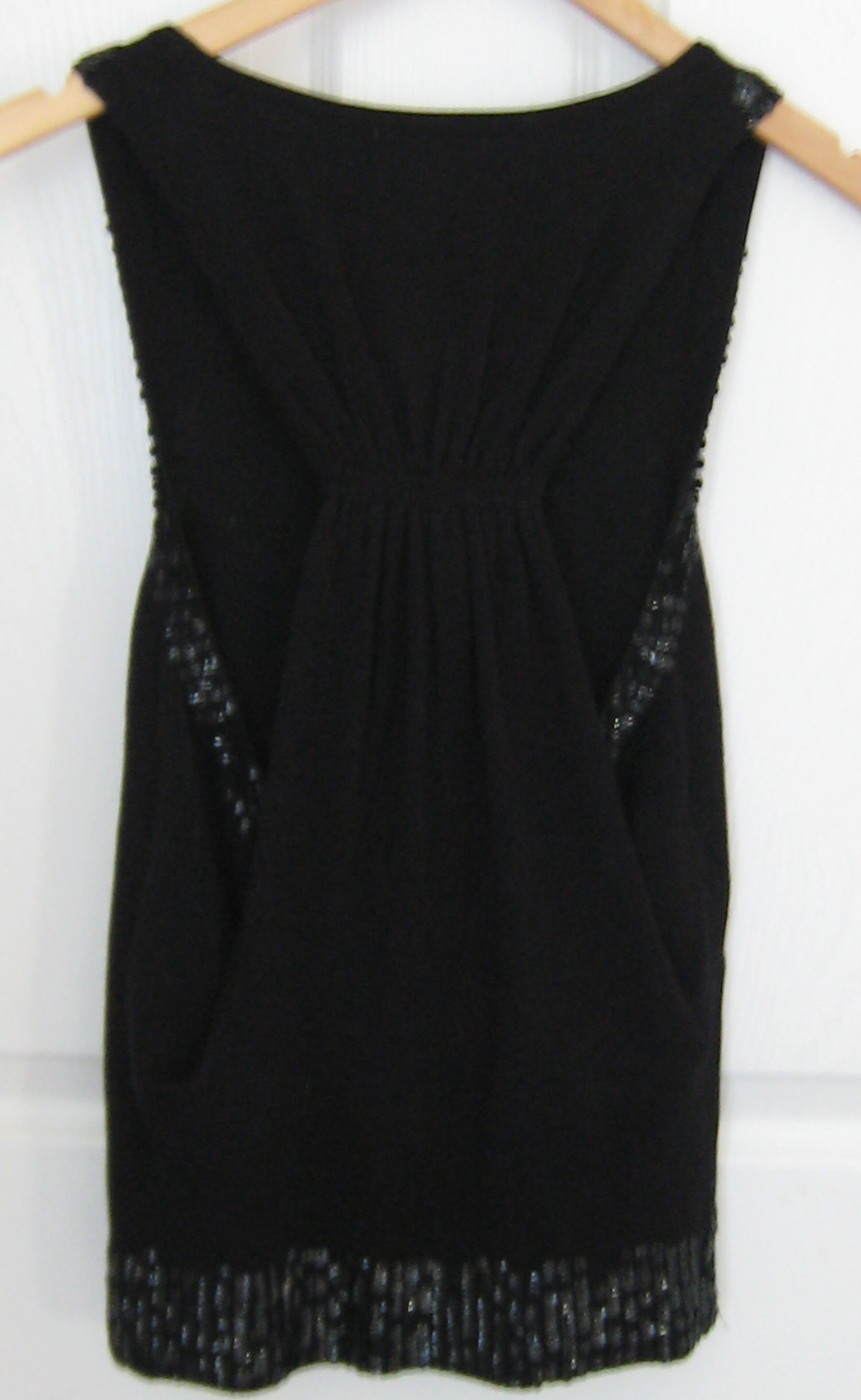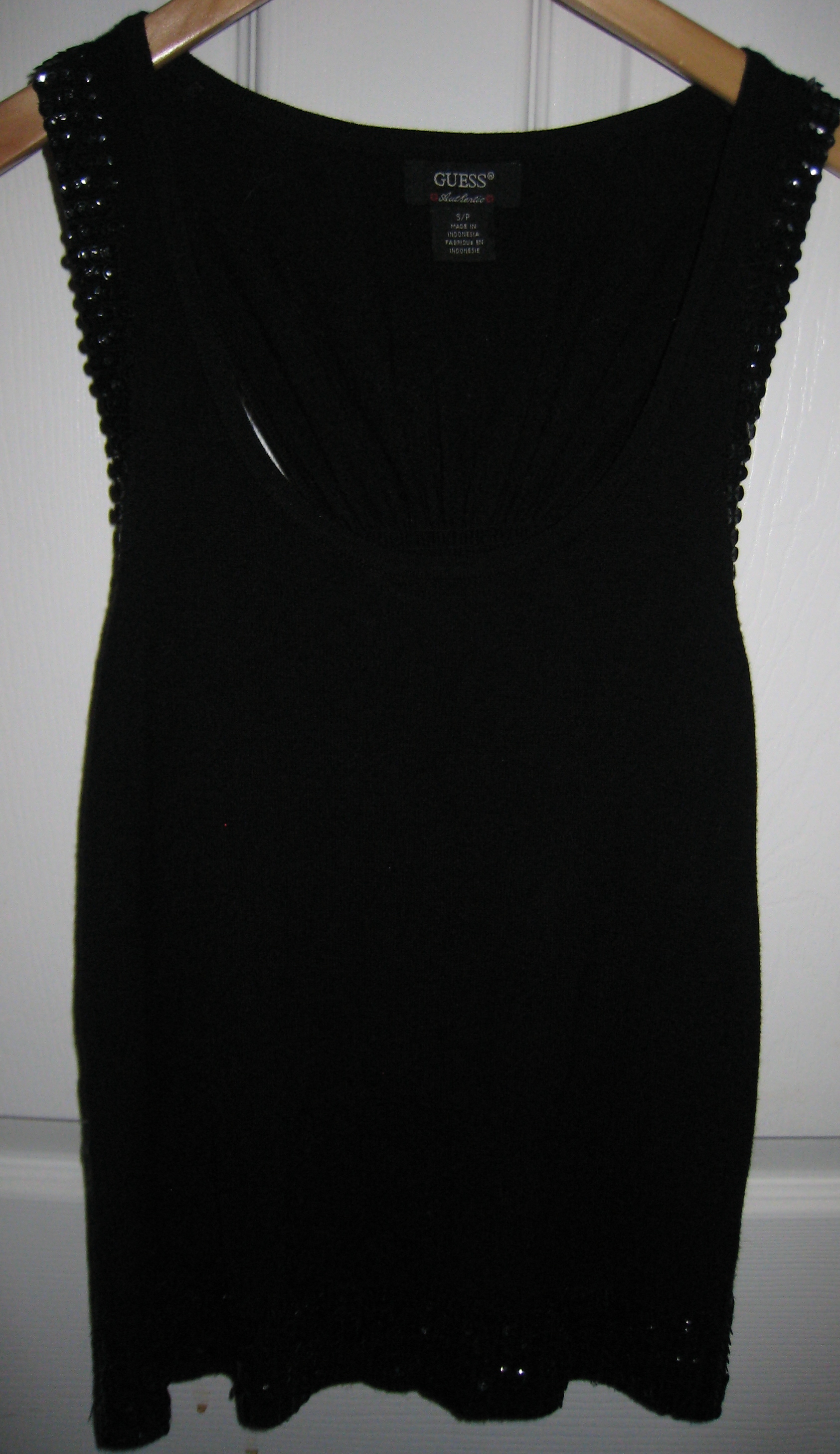 Item: Tank Top Color: Black, with sequins Designer: Guess? Where Purchased: My gut is saying Marshall’s Years owned: Probably pushing 10 Condition: Not bad, considering its age, but missing a few sequins