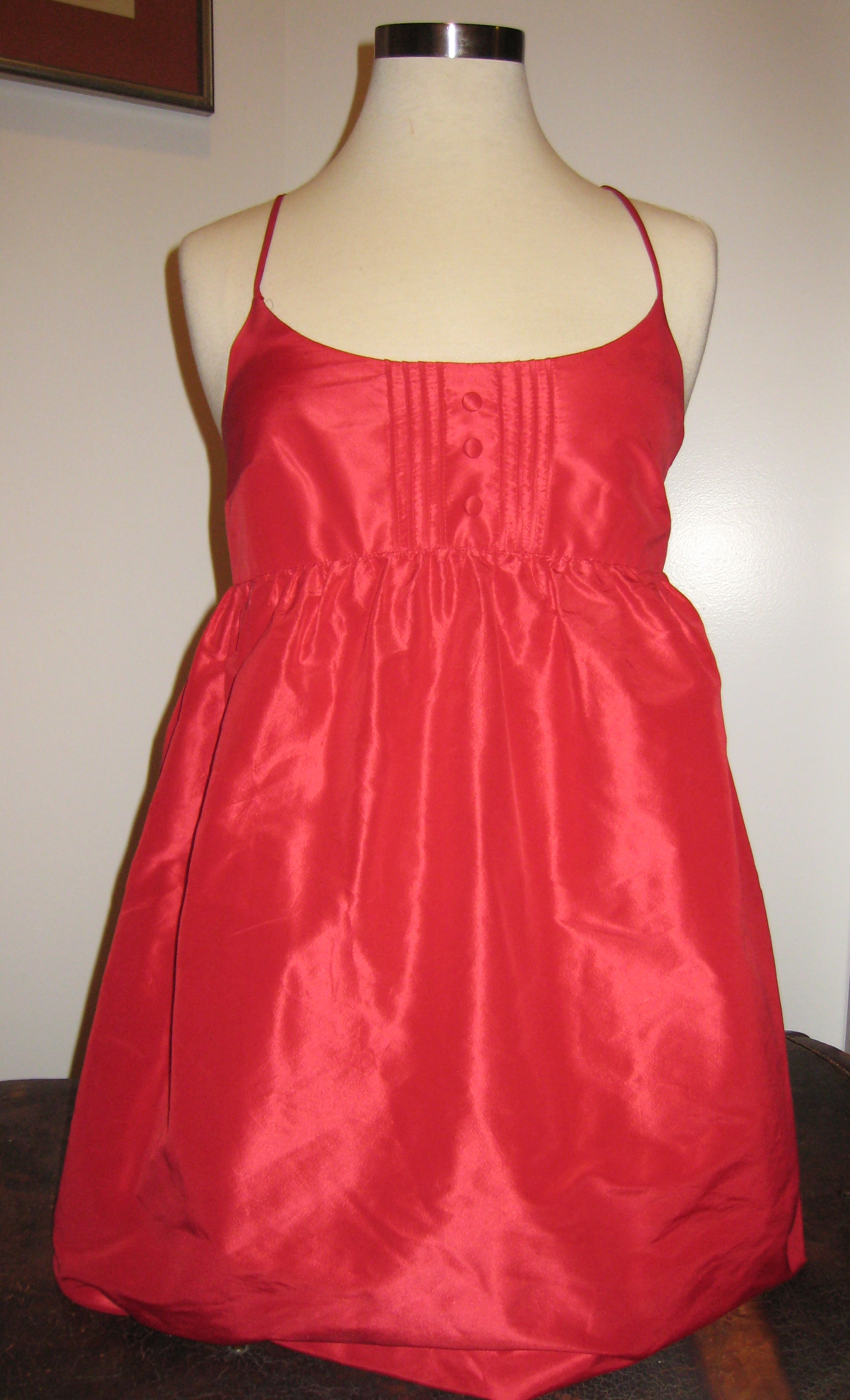 Item: Dress Color/Fabric: Cherry Red, silk Designer: Julie Haus Where Purchased: Next Boutique Years Owned: 4