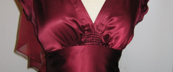 Item: Blouse Color?Fabric: Ruby, silk Designer: BCBG Where Purchased: Marshall’s Years Owned: Six