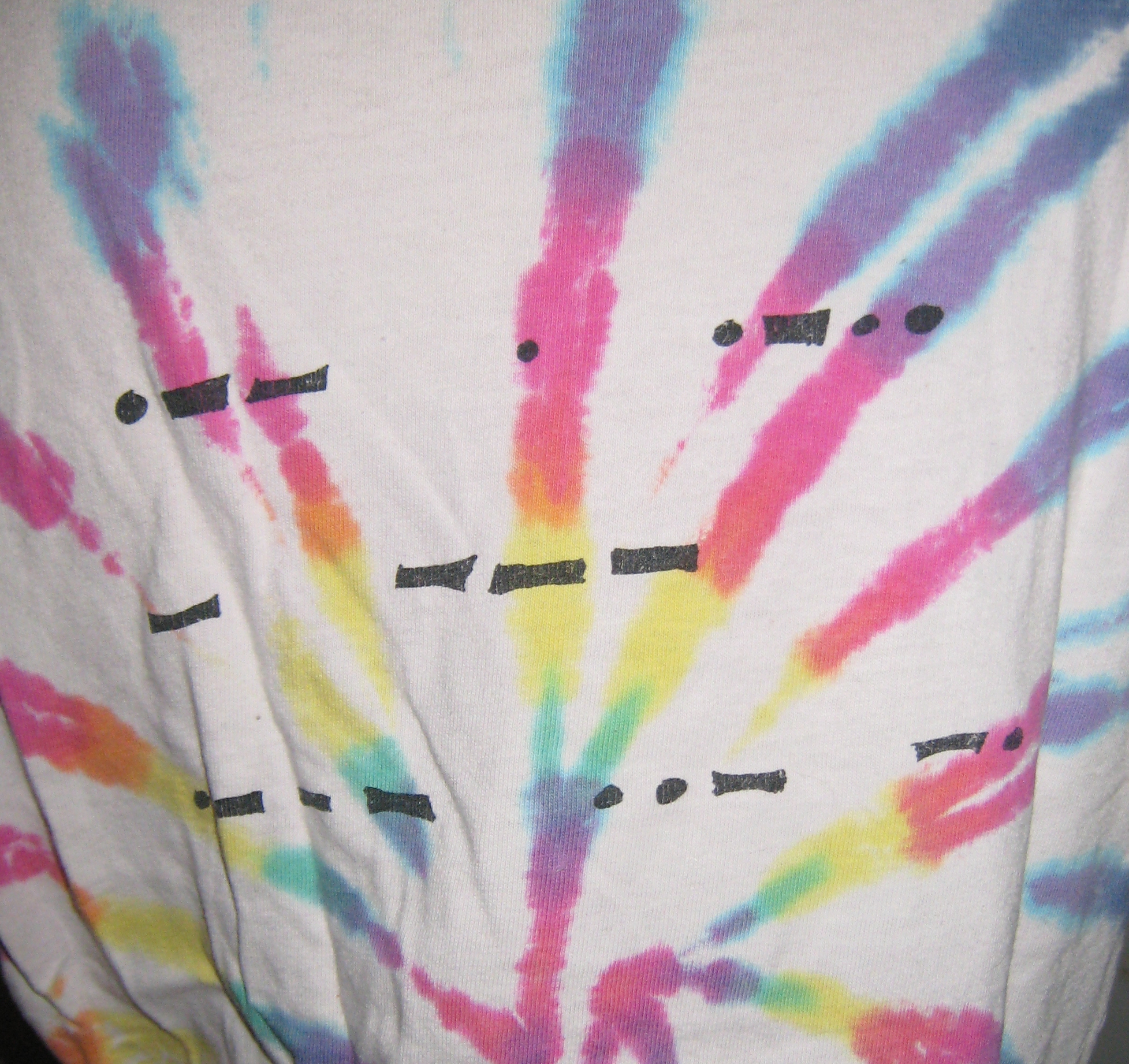 Yeah, it’s morse code. That’s how clever we were! And even more clever than we had intended; when we wore the tees to meets, the other teams would want to know what it meant. It drove them mad. Surely it was some strategic message or inspiration that would power us through! We were forbidden to tell, and all other teams were intimidated.