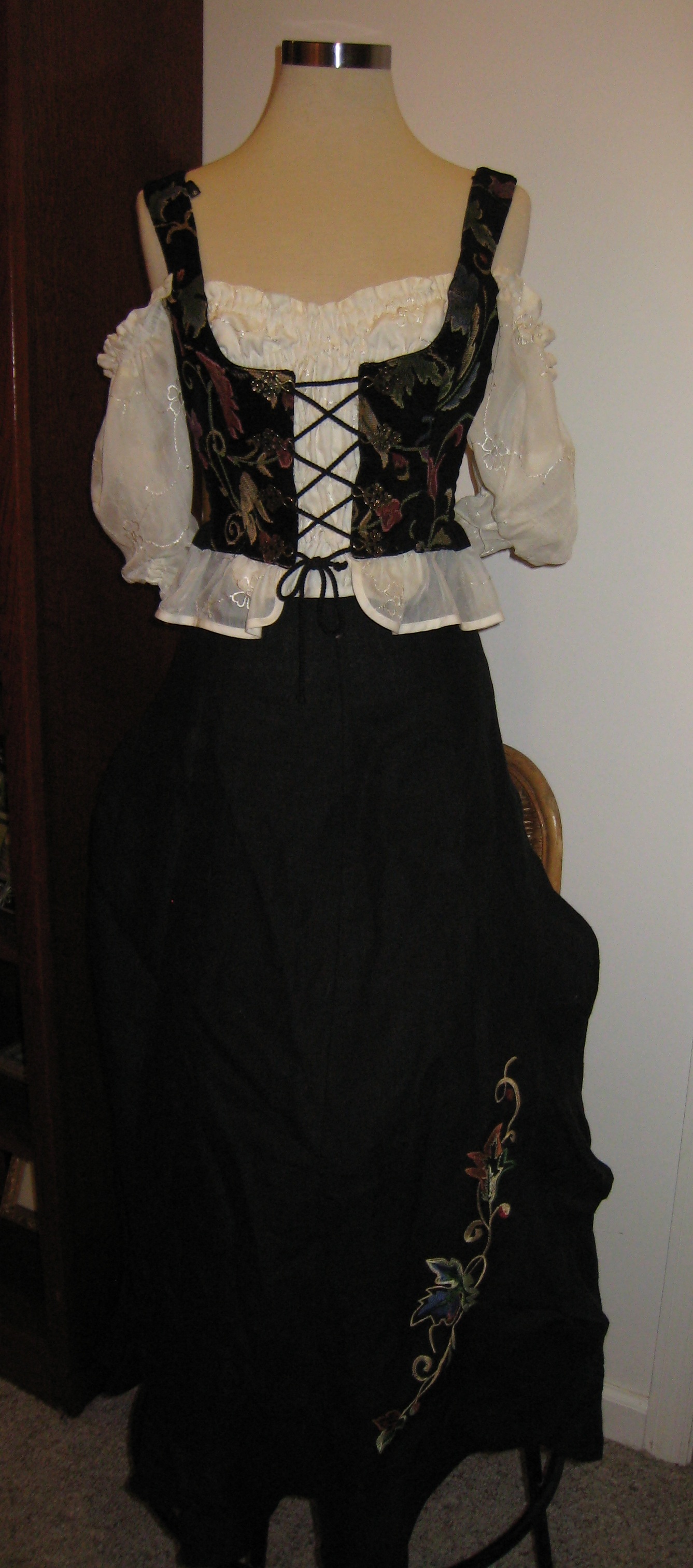 Item: Dirndyl and skirt Color/Fabric: Black/white/flowers, linen/carpet/polyester Designer: Landhaus Where Purchased: A department store in Munich, Germany Years Owned: 2