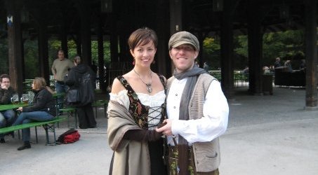 The first day in Munich we saw the amazing, historic town, and went shopping for our Oktoberfest outfits. Who knew they were so expensive! Man. Way more than I pay for real clothes. But we lucked out, and found some lederhosen for Nate that were on sale because they had neon green embroidery, and I found the skirt/dirndyl combo that was cheap because it wasn’t the short, slutty popular variety. Plus, it is made for someone who doesn’t have any ribs. I have to expel every last trace of air from my lungs to get into it.