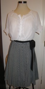Only you could wear this striped skirt..Pills and all! I for one keep stripes & pills away from my posterior! It looks like an adorable outfit!