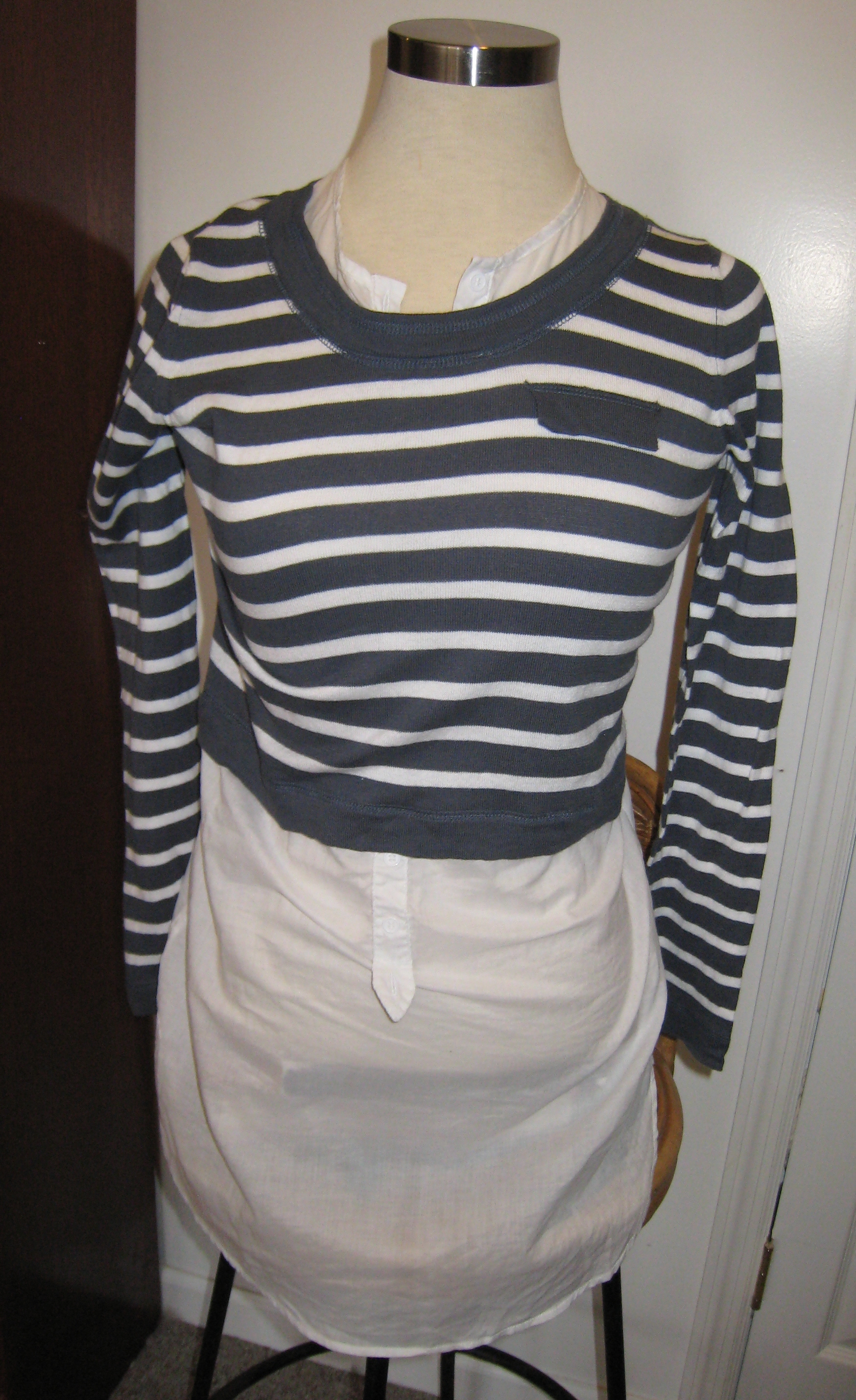 Item: Sweater/Tunic Color/Fabric: Blue/white, cotton Designer: Shae Where Purchased: Anthropologie Years owned: 1