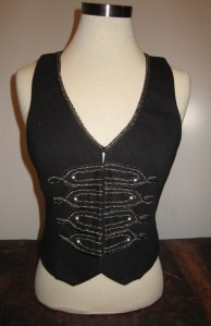 I need to rectify this situation, and give this vest something fun. I would have thought to wear it when we go see American Idiot for the third time next week, but I already have invented an outfit and it will rock. I don’t think that I can toss this until it’s really had a chance to shine. I mean rock.