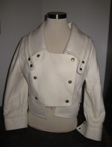 Here is a little jacket that truly isn’t very practical. I suppose that it’s nice in the fall or spring, when it’s not too cold. It’s wool, so it is a little on the warm side. It’s just so darn itty bitty. The sleeves are not full length, and it’s very cropped.