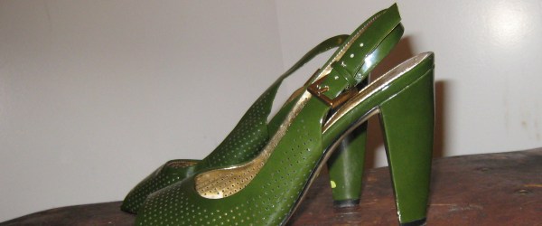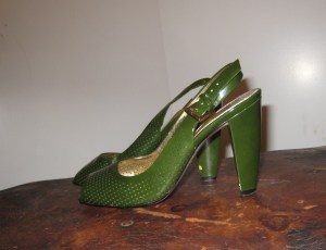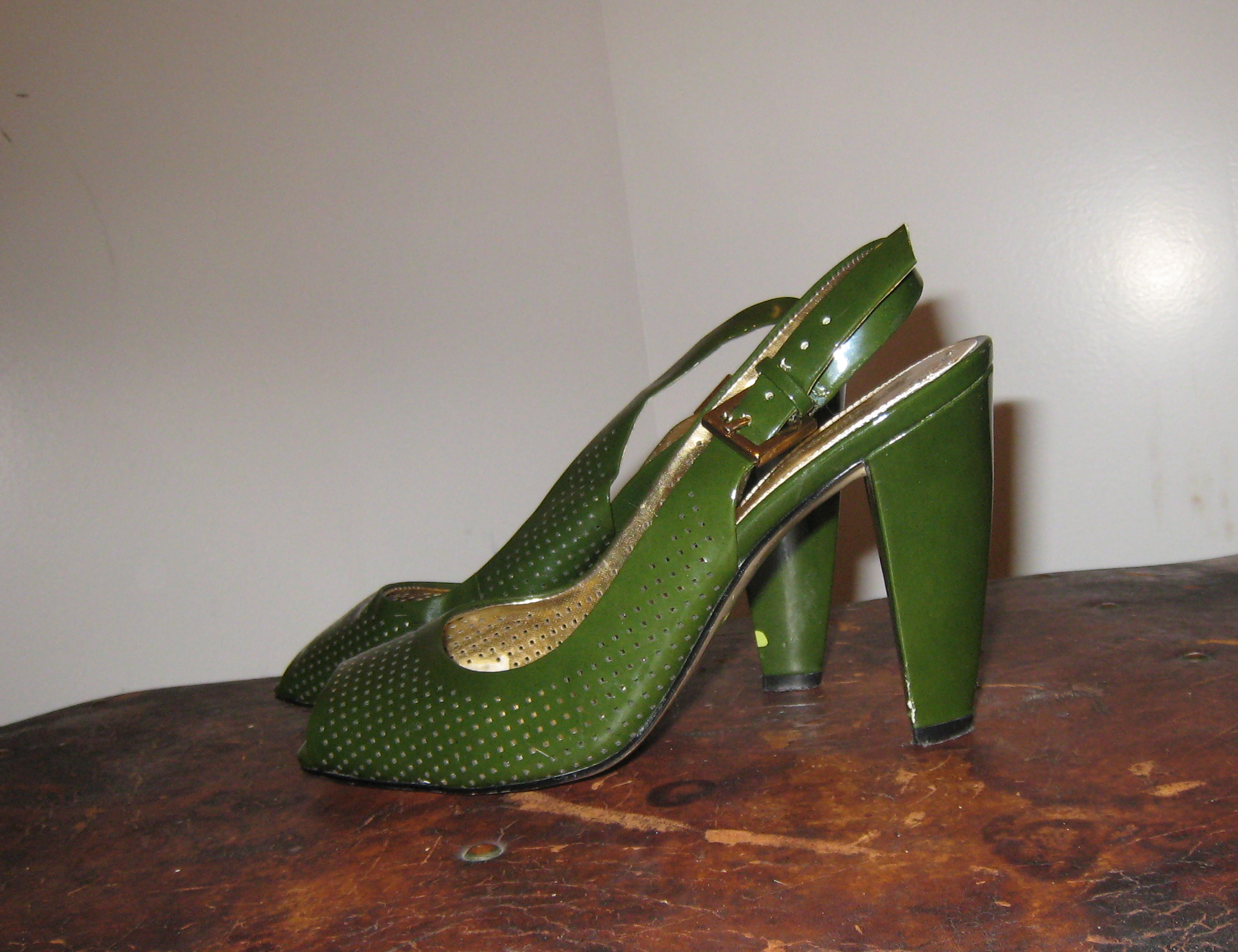I love the chunkiness and architectural curve of the heel, and the vividness of the green.