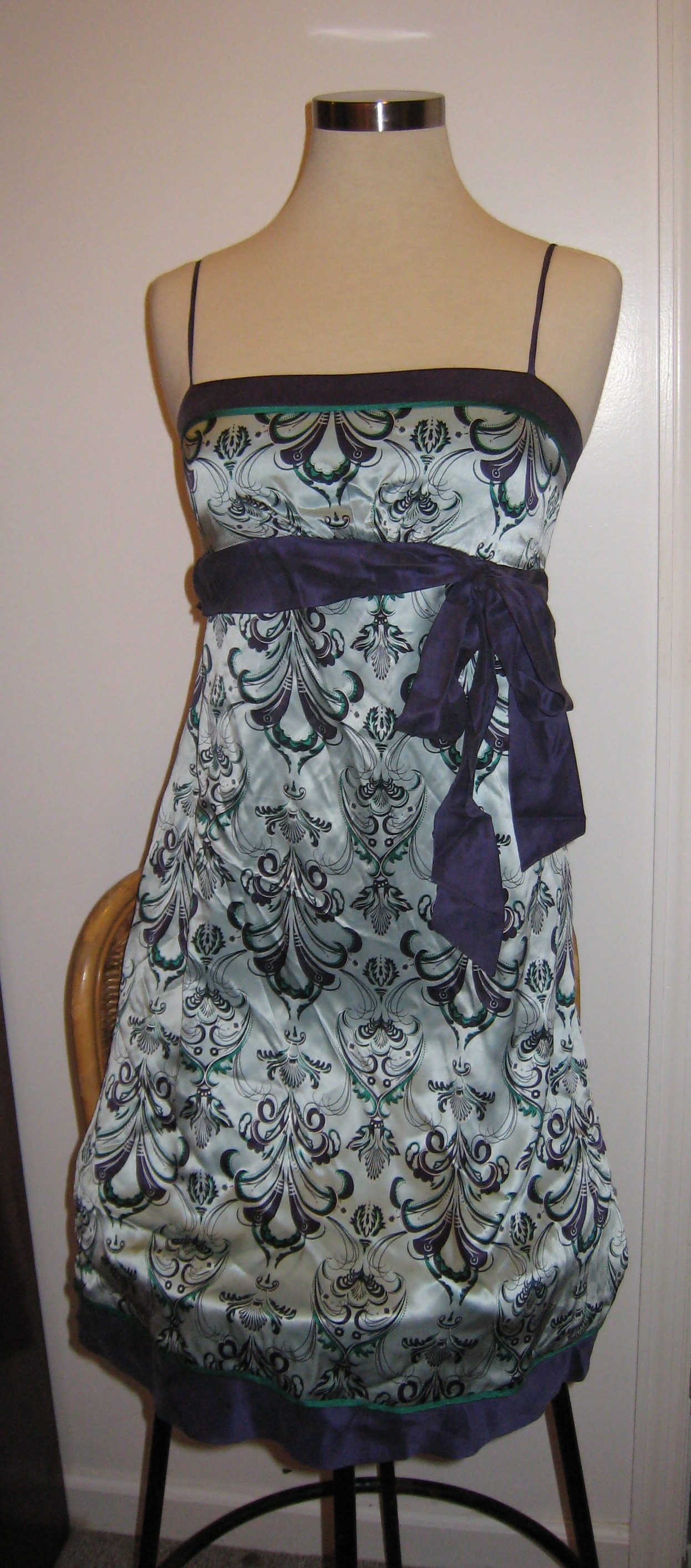 Item: Dress Color/Fabric: Blue/green/purple, silk Designer: Max Studio Where Purchased: A consignment shop in Perrysburg, Ohio Years Owned: 1