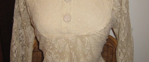 I think it was in 2007 or 2008 when I went to my first true Oscar party. It was at the home of my friends Kevin and Michael, and it was wonderful. There were many neighbors, and people I din’t really know, so I did not feel comfortable wearing a gown. I thought that this blouse might be just the thing, since the lace made it fancy. And I also really loved the big plastic buttons.