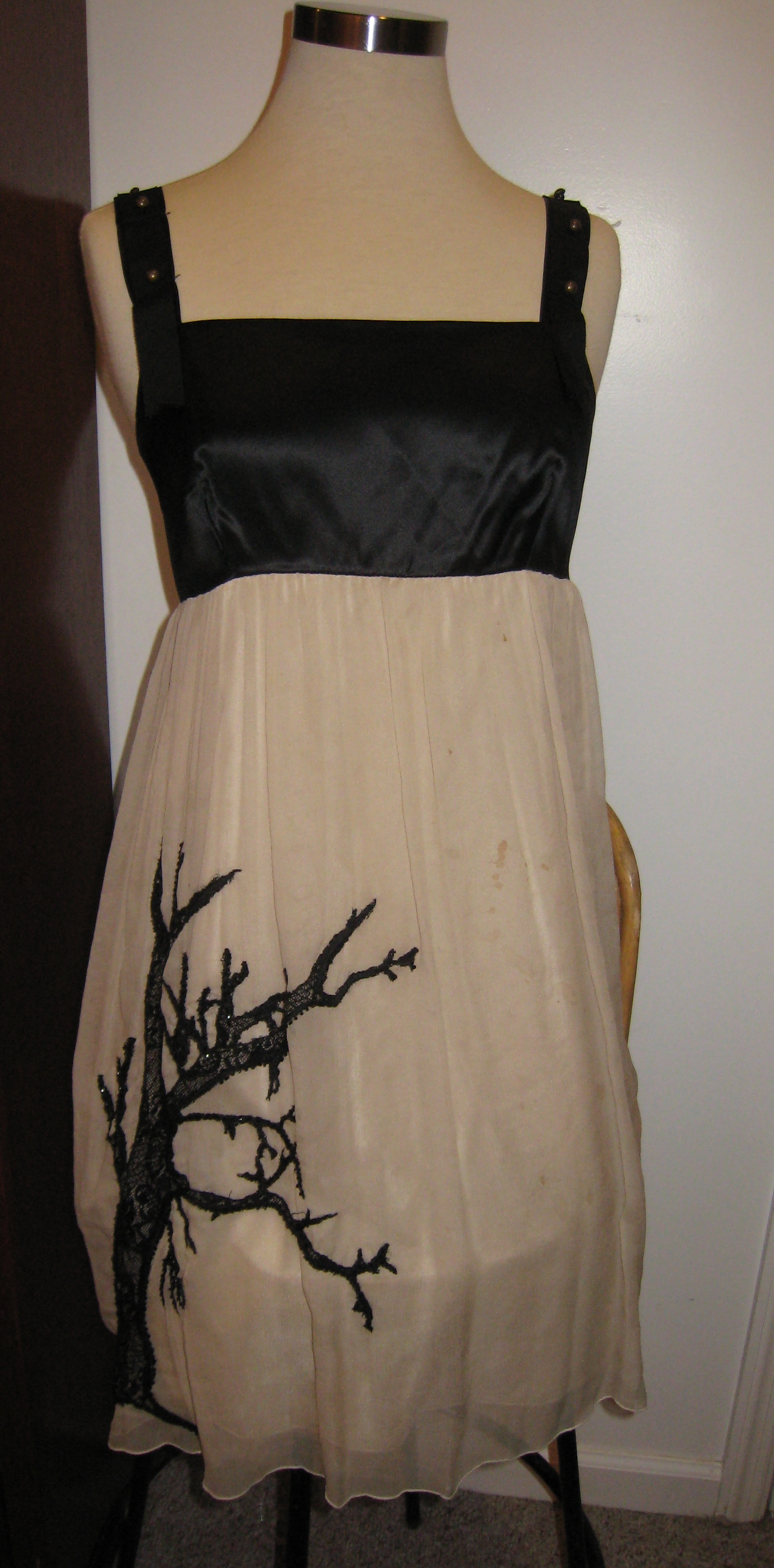 Item: Dress Color/Fabric: Ebony/Ivory, silk Designer: For Love And Liberty Where Purchased: Next Boutique Years Owned: 4