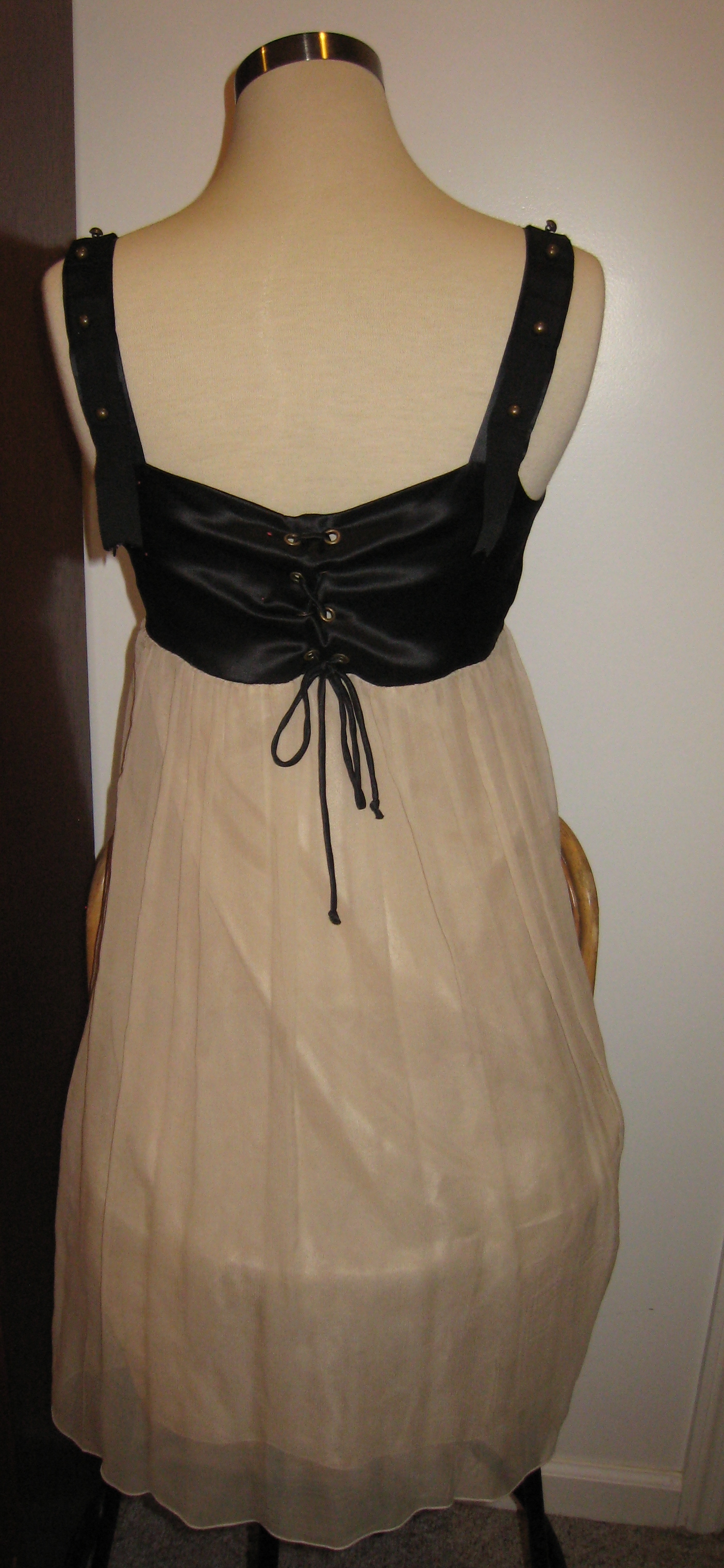 I remember when this dress arrived at Next Boutique, along with one more piece, a blouse I think, from this brand called “For love And Liberty.” I loved the name immediately, and then fell in love with the dress. I loved the sweetness of the chiffon combined with the rather edgy brass grommets and lace tree. Plus, the back: