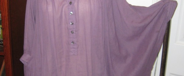 Item: Cape-ish, tunic-ish Blouse Color/Fabric: Lavender, cotton Designer: Elizabeth and James Where Purchased: Next Boutique Years Owned: One