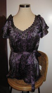 Item: Blouse Color/Fabric: Multiple purples, grey/silk Designer: Rebecca Taylor Where Purchased: Barney’s Co-op Outlet Years Owned: 2