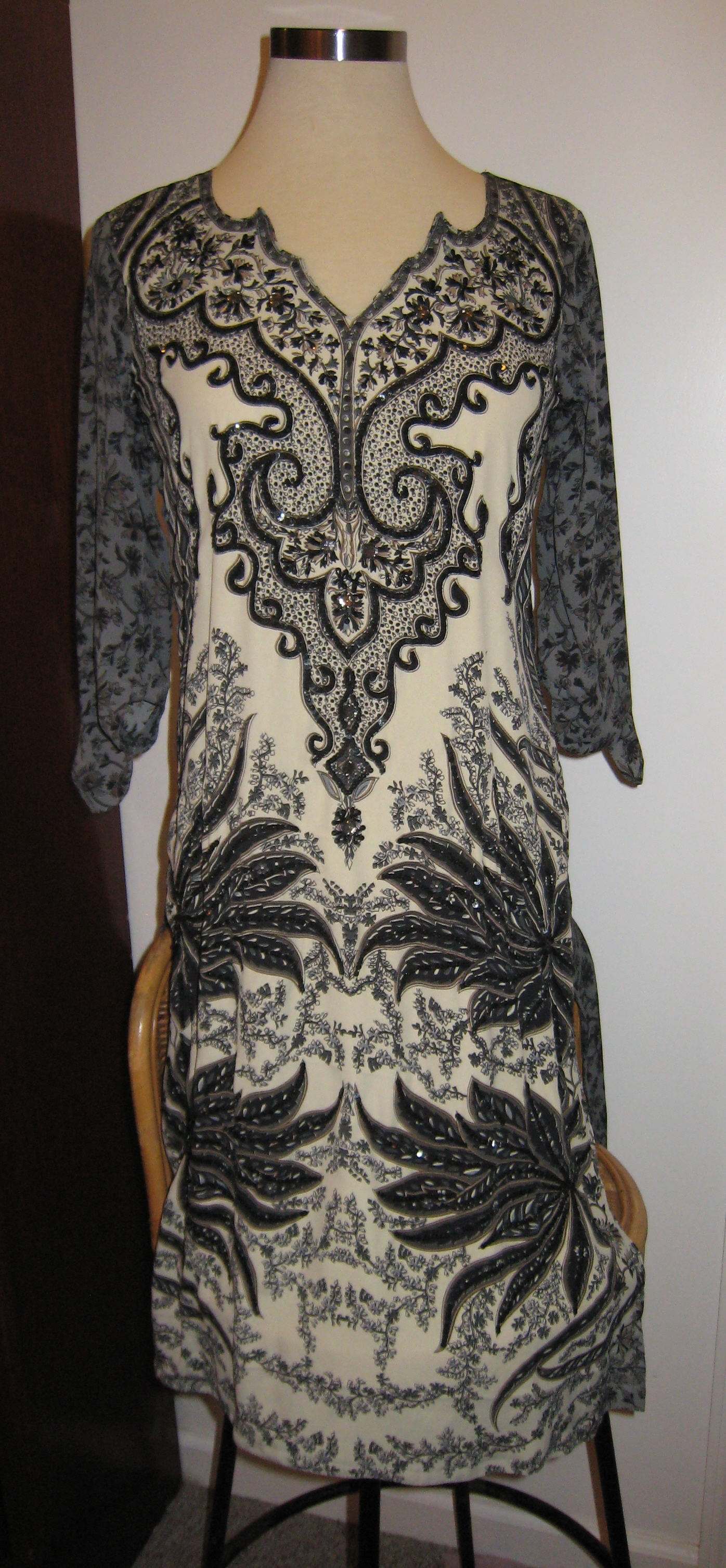 Item: Tunic Color/Fabric: Undetermined, grey, black, white Designer: Custom made Years Owned: 2