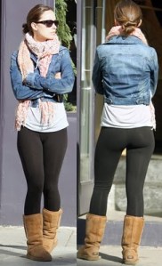 Three. I don’t care how perfect your body is. Leggings-As-Pants are not flattering on anyone. There are bits of all of us that just do not need the kind of attention the Legging-As-Pants call to it. See for example this photo of Olivia Wilde: