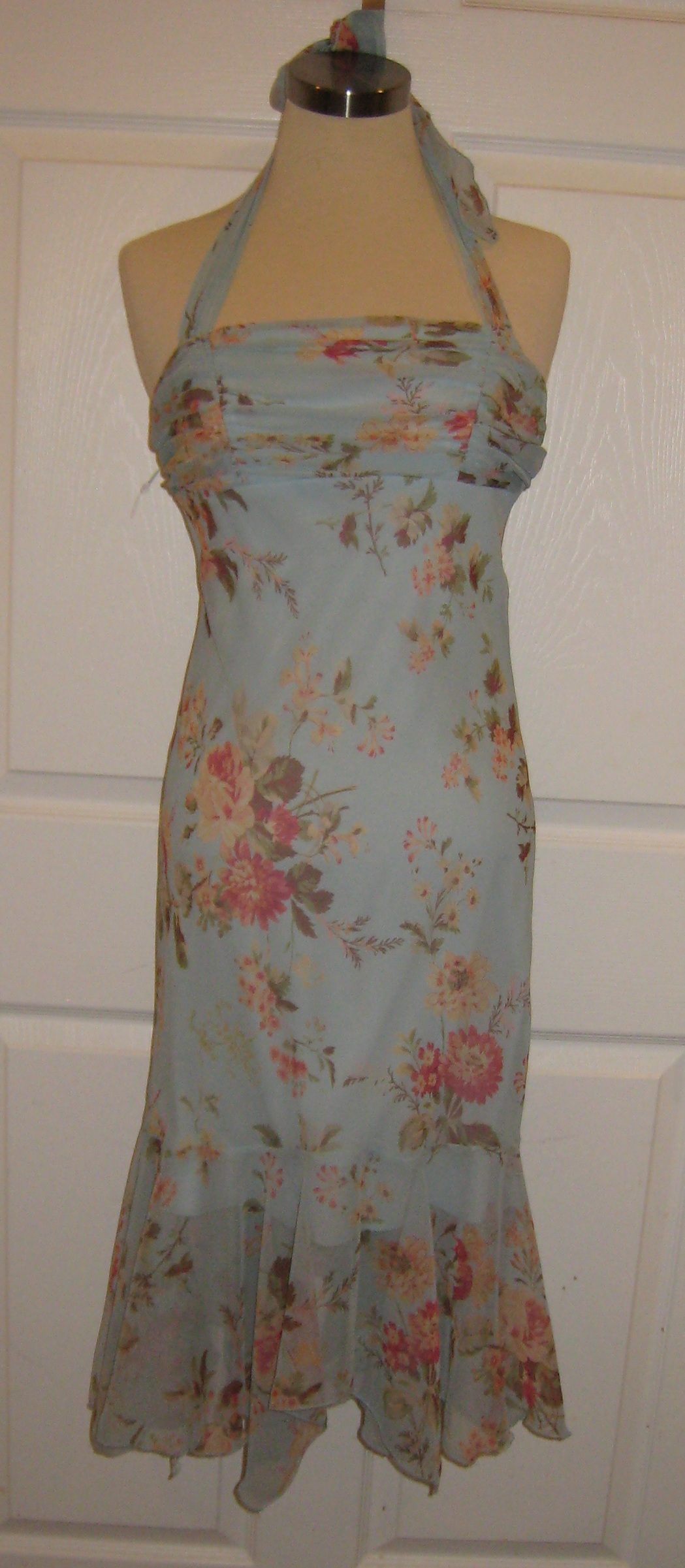 Item: Dress Color/Fabric: Skye blue, polyester Designer: XOXO Where Purchased: The Salvation Army Years Owned: Three
