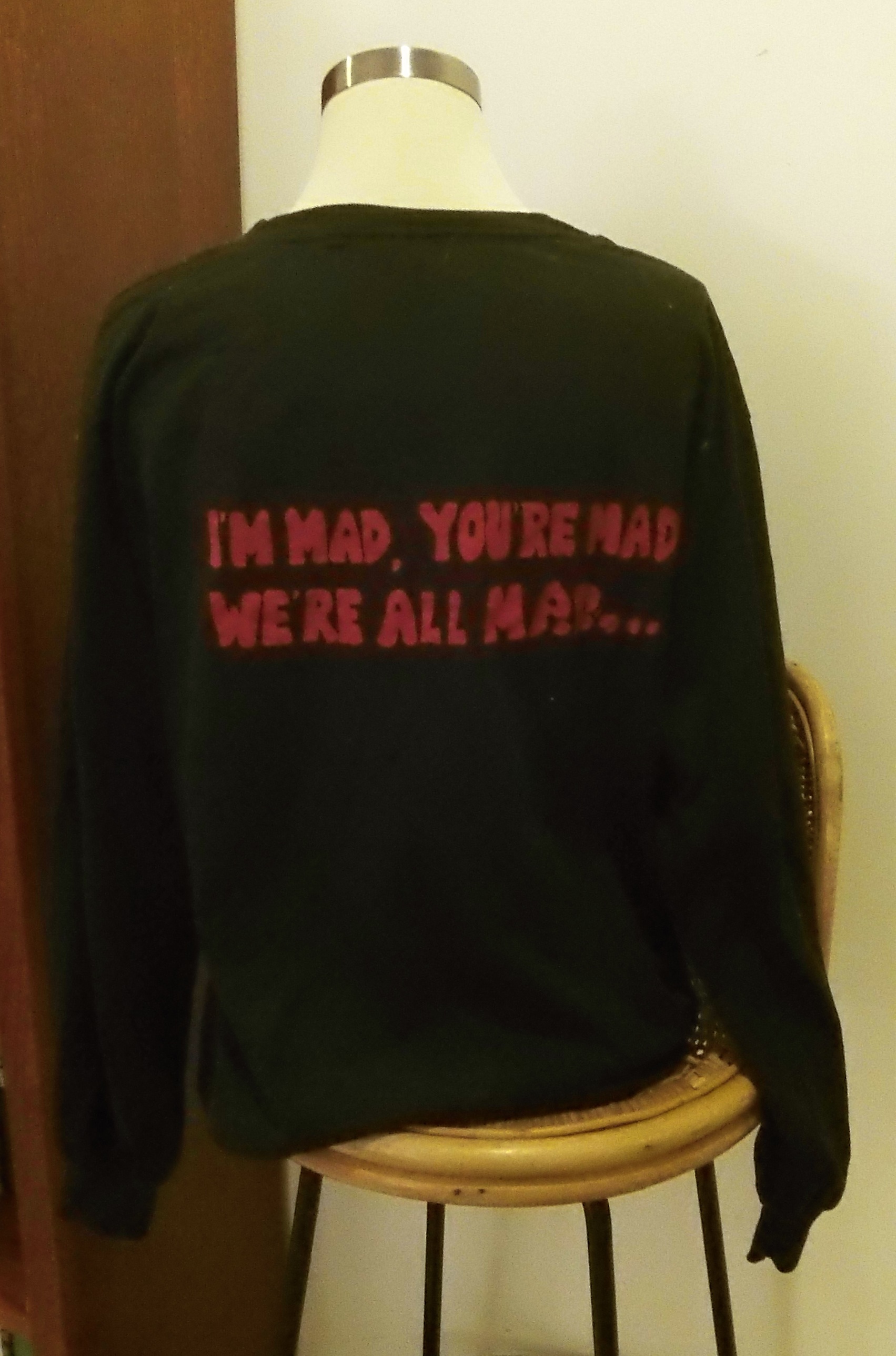 Item: Tee-Shirt Color/Fabric: Black/white/Bono, cotton Designer: Unknown Where Purchased: Free, Grandma’s Garage Years Owned: 12ish