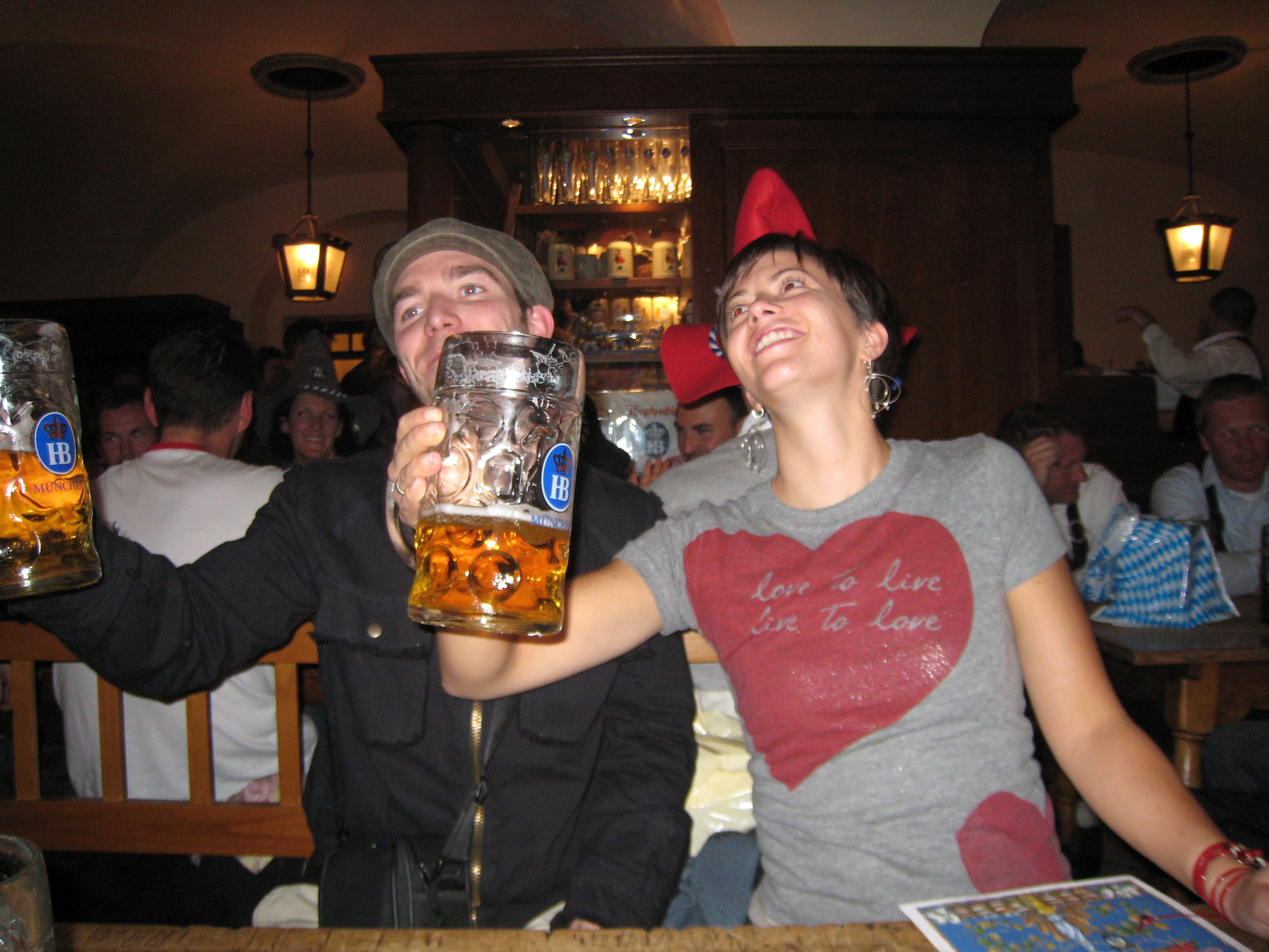 Eventually, the friendly, welcoming spirit of the people surrounded us, and we had so much fun. It was a room brimming with joy and good cheer, everyone singing and laughing, swaying frothy beer mugs to the music. Like so: