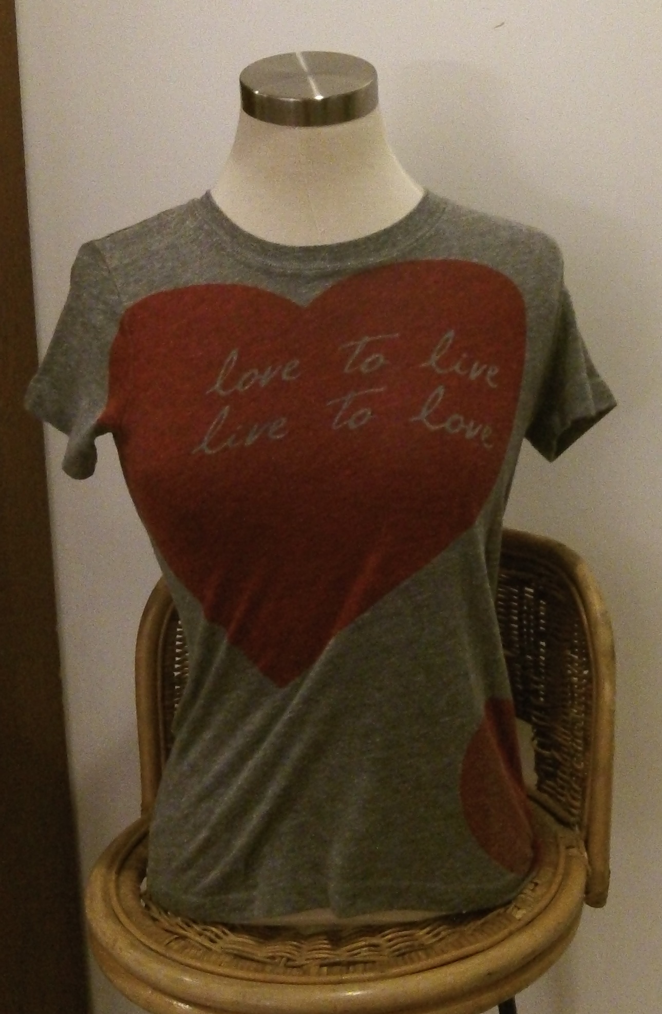 Item: Tee-shirt Color/Fabric: Grey, polyester/cotton/spandex Designer: Spark In The Dark Where Purchased: Urban Outfitters Years Owned: 4